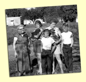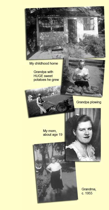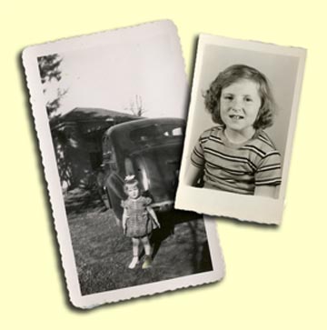 Childhood During my early years I learned to appreciate the things Grandma and Grandpa enjoyed — carpentry, gardening, canning, art, reading, learning, people, the scent of freshly washed clothes hanging on the line... . Mom with her husband and growing family of children, my half siblings, visited us often. Many summers and even over the course of a school year or two, my sisters and brothers spent weeks or even months with us. Sometime between the two pictures below, the first where I looked stiff and uncomfortable in a little dress while trying to hold that white adornment atop my head and the second where I must have just come in from a windstorm, I learned how to feel quite comfortable with life. Because of those years with the strong and loving influence of my grandparents, I can gladly say along with Hortense Calisher, "A happy childhood can't be cured."
